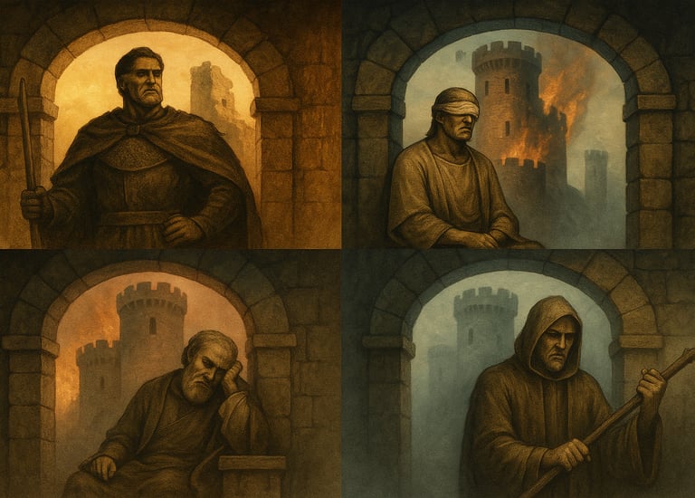 Meet the guardians of the Seven Towers, each bearing a flaw, a fire, or a final warning. These figures are more than characters; they are reflections of our spiritual condition in a world unraveling.